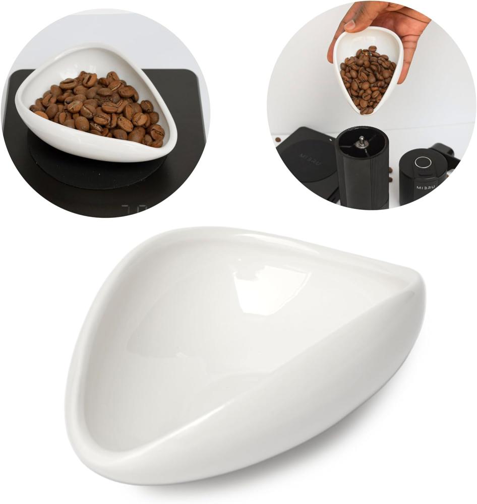 تمتاز صحن جرعات القهوة بتصميمه الأنيق والعملي، وهو مُصنوع من السيراميك عالي الجودة . يتسع لحوالي 20-25 جرام من حبوب القهوة، مما يجعله مناسبًا لوزن ونقل الحبوب بسهولة إلى الطاحونة.