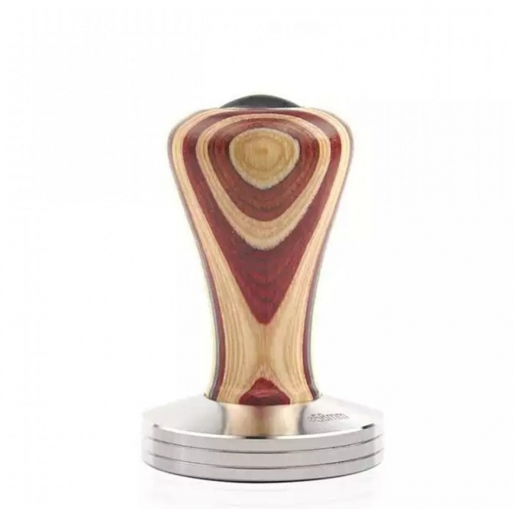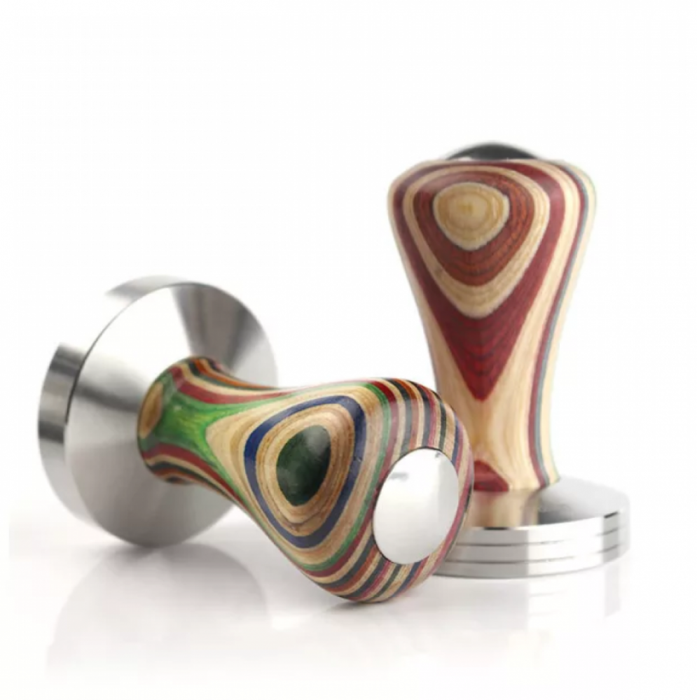 تامبر مصنوع من الخشب الملون الفاخر لكبس القهوة أثناء تحضير الإسبريسو , يتميز بقاعدة مسطحة من الإستالنس ستيل مقاومة للصدأ , تسمح بتوزيع الضغط بشكل متساوي مع مقبض خشبي ملون بعدة مقاسات ( 58mm )